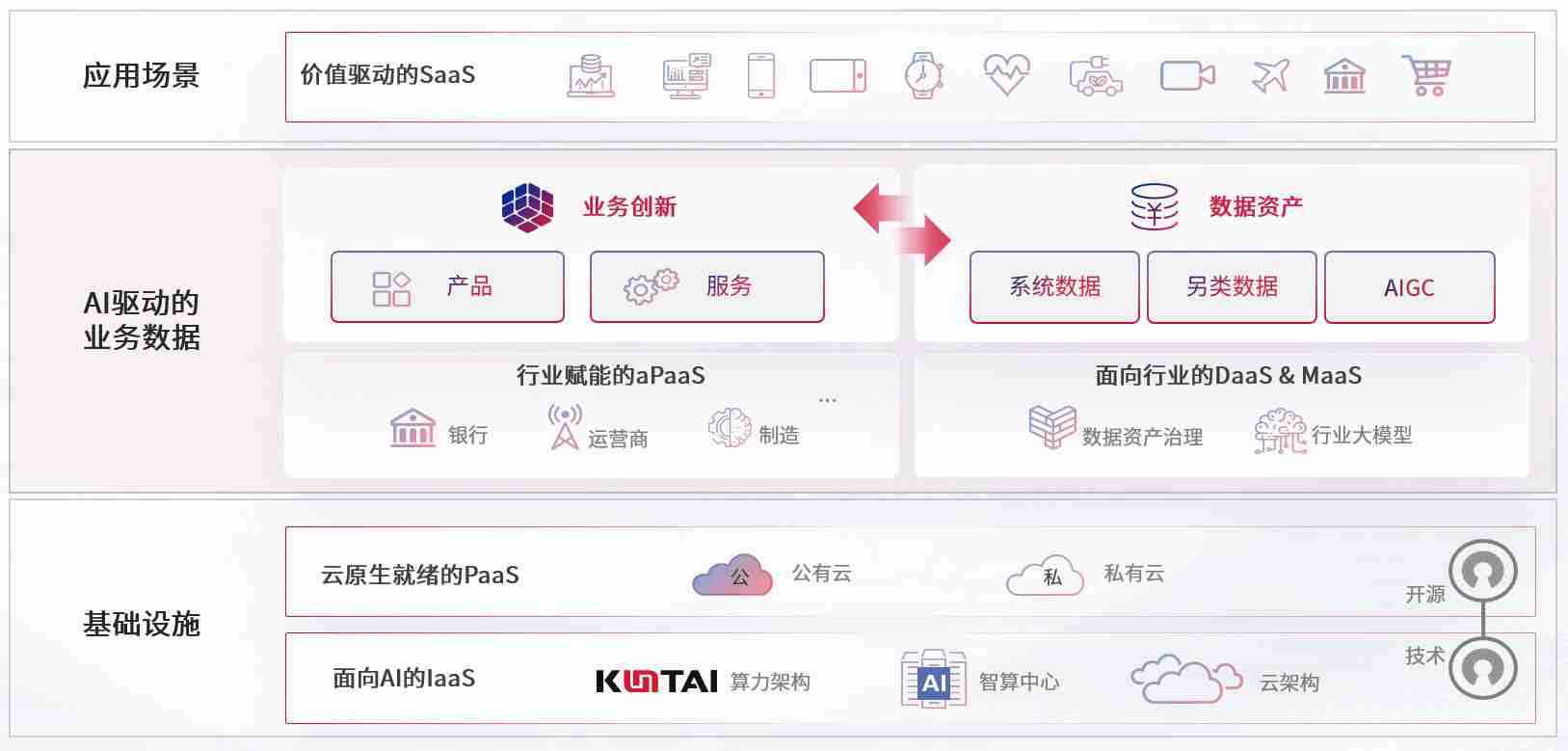 数字时代,,围绕企业数字化转型的关键要素,,365钱包数码开创性的提出数云融合战略和技术体系框架,,,着力在云原生、、、、数字原生、、、、AI原生和信创产业上架构产品和服务能力,,为处在不同数字化转型阶段的快消零售、、汽车、、金融、、、医疗、、政企、、、、教育、、、运营商等行业客户提供泛在的敏捷IT能力和融合的数据驱动能力,,,,构建跨界融合创新的数字业务场景和新业务模式,,,,助力企业级客户建立面向未来的核心能力和竞争优势,,全面推动社会的数字化、、智能化转型升级。。